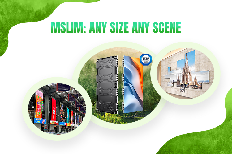 The Mslim P1.9 indoor LED display is not only energy-smart but also highly adaptable. It comes in five different sizes, allowing free splicing both vertically and horizontally—even in uncommon dimensions such as 250×500 mm and 250×750 mm—making it suitable for irregular spaces. Additionally, this fixed indoor LED display can form a 90-degree cube to decorate columns with digital advertisements. In areas with limited service space, the Mslim P1.9 supports front maintenance for easy module replacement and can be installed hanging or wall-mounted, making it ideal for indoor advertising signage.